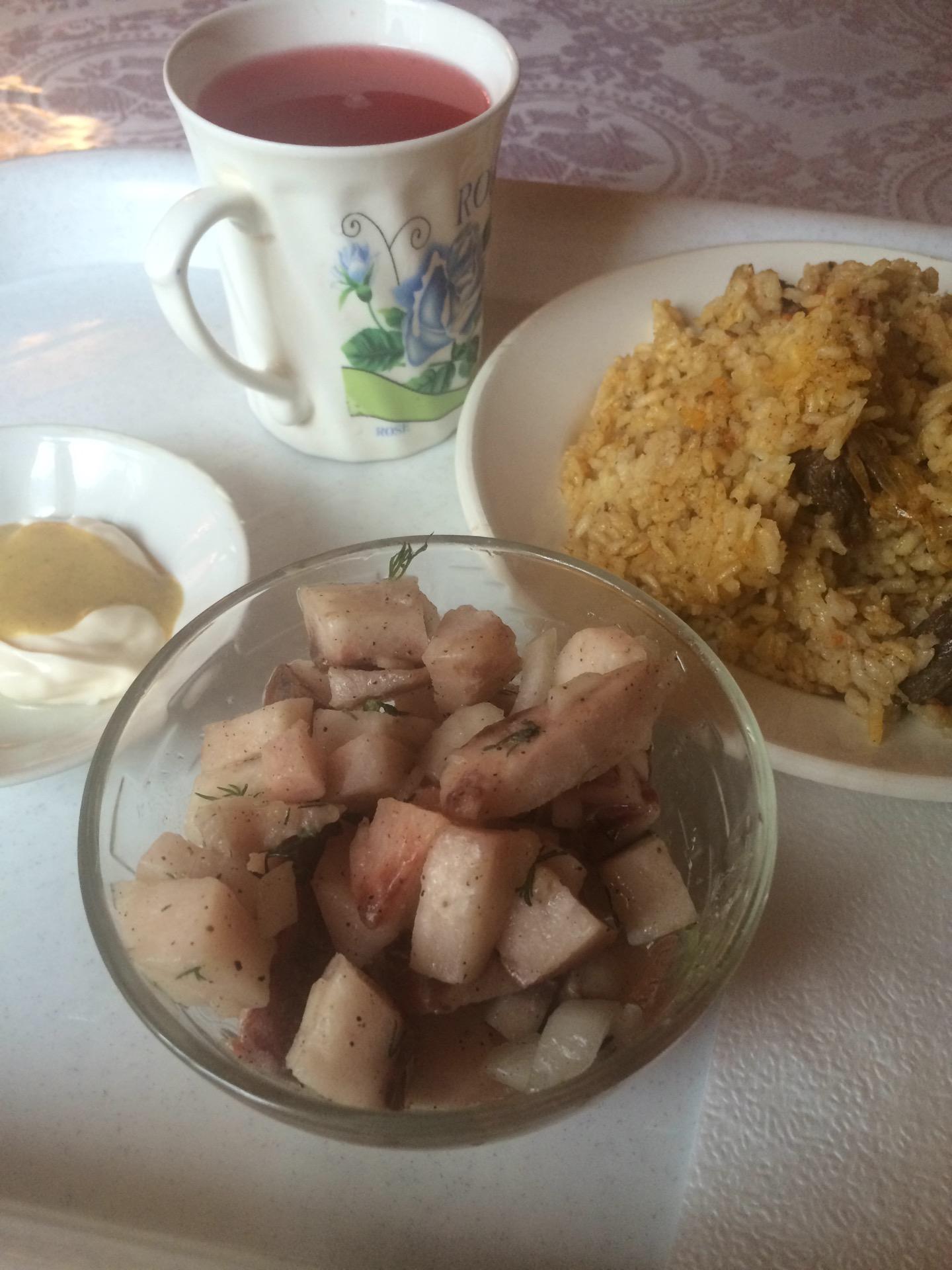 Вай-фая нет, карты не принимают. Можно попробовать якутскую похлебку из потрохов, иногда бывают жареные караси. В общем и целом на три с плюсом.